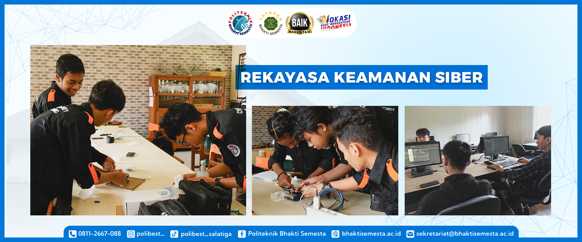 Program Rekayasa Keamanan Siber (RKS) dirancang khusus untuk membekali mahasiswa dengan pengetahuan dan keahlian dalam pengujian, perancangan, dan implementasi pertahanan dalam dunia maya. Mahasiswa akan belajar untuk membuat proyek-proyek yang membutuhkan kolaborasi dengan industri dan pemerintah serta membantu mahasiswa untuk mengeksplorasi berbagai ancaman di dunia maya serta membentuk sistem pertahanannnya. Selain itu Program Studi Rekayasa Keamanan Siber Politeknik Bhakti Semesta juga sudah memiliki Sertifikat International diantaranya : CISCO, Mikrotik, EC-Council.